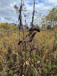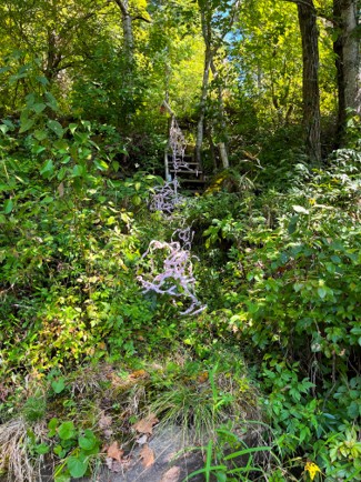 Being involved in art-making and teaching for many decades causes pause about the number of garbage cans filled toward these efforts. I often wonder what it would be like to exist in a society that felt little need to manipulate earth’s natural beauty. Is this even possible? That said, I have also been fortunate to be involved with the ideas and work of landscaping since I was young. One can get bogged down with the shunning of weeds or the manipulation of topiary, but as art material, plants are fascinating. On many levels. I have conducted research on the typologies of gardens and have always kept a garden for agrarian and aesthetic reasons. These images represent other impulses to juxtapose art with nature–or perhaps to highlight nature as art. They are rudimentary, but I feel a larger project of land preservation and ‘scaping in my future.