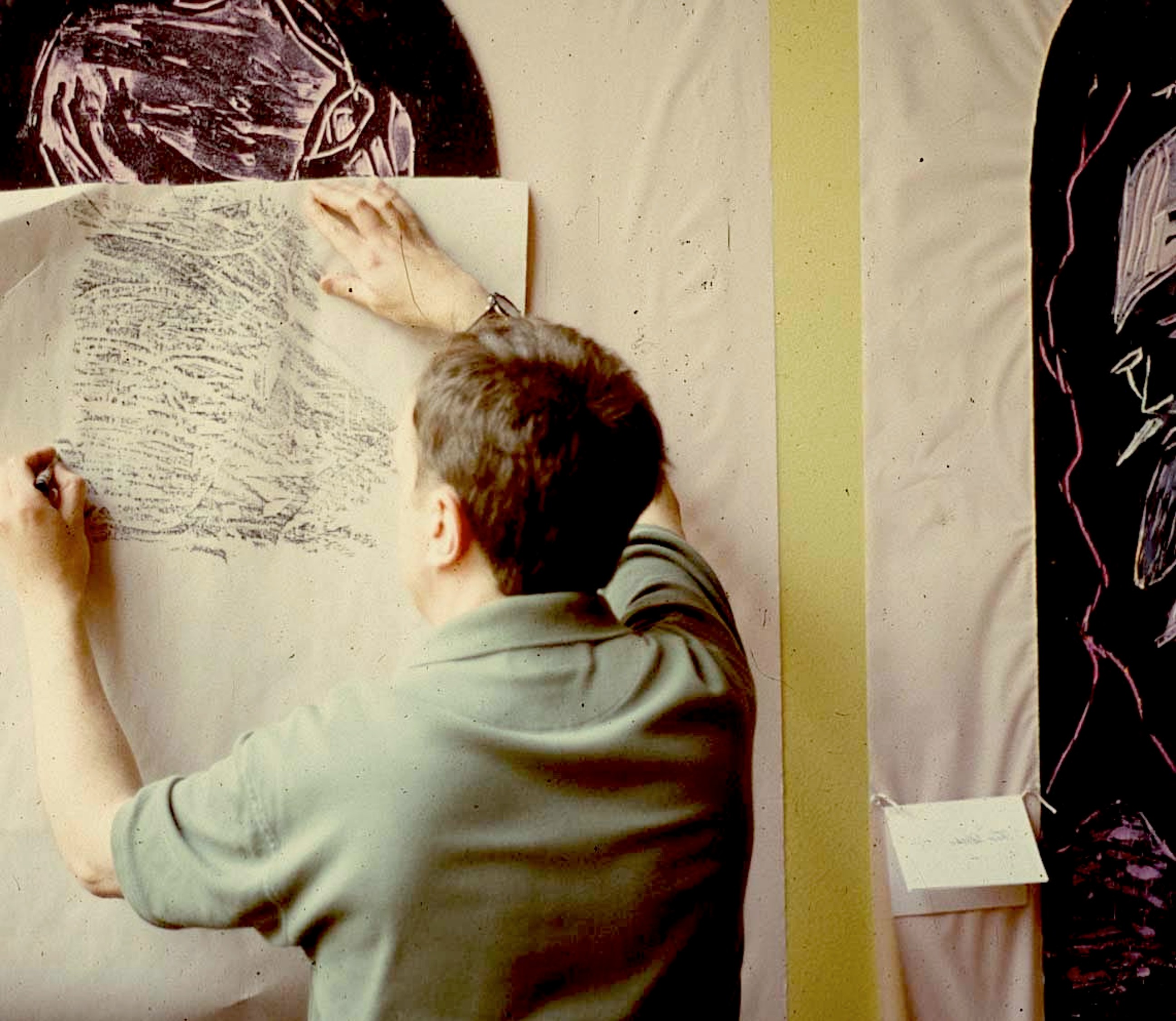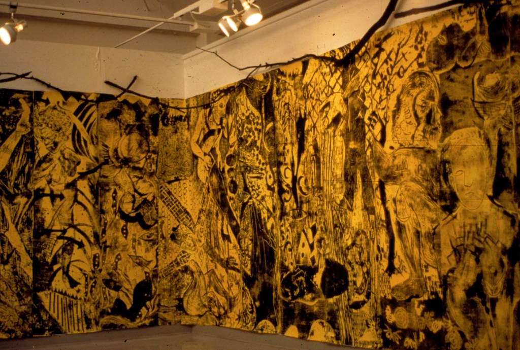 With the full zeal of a recent MFA in printmaking, I spent the following two decades taking scale and detail to an extreme. I generated large printed papers and turned these into installations. Most of these were site-specific and fitted to the meaning and physical scope of the venue. I enjoyed the ephemeral research and process of the installations. Additionally, many of the photographs were pre-digital and thus lack great clarity; however, I do think they still capture the pursuit of original printing methods to generate a wide range of mark-making.